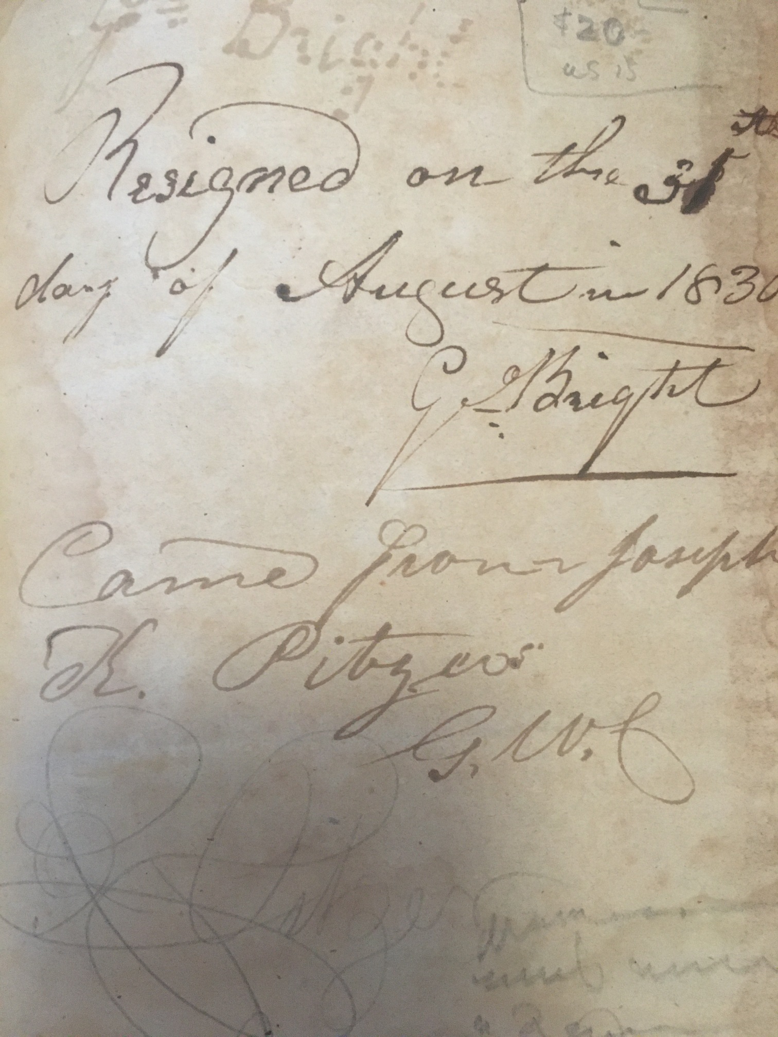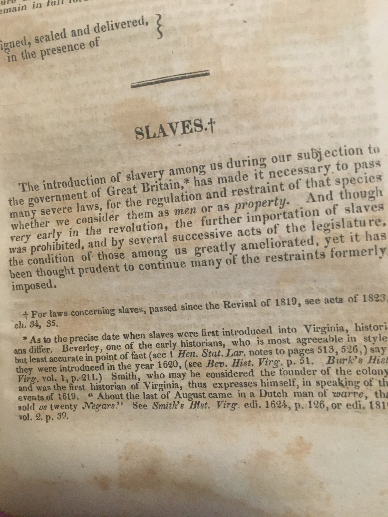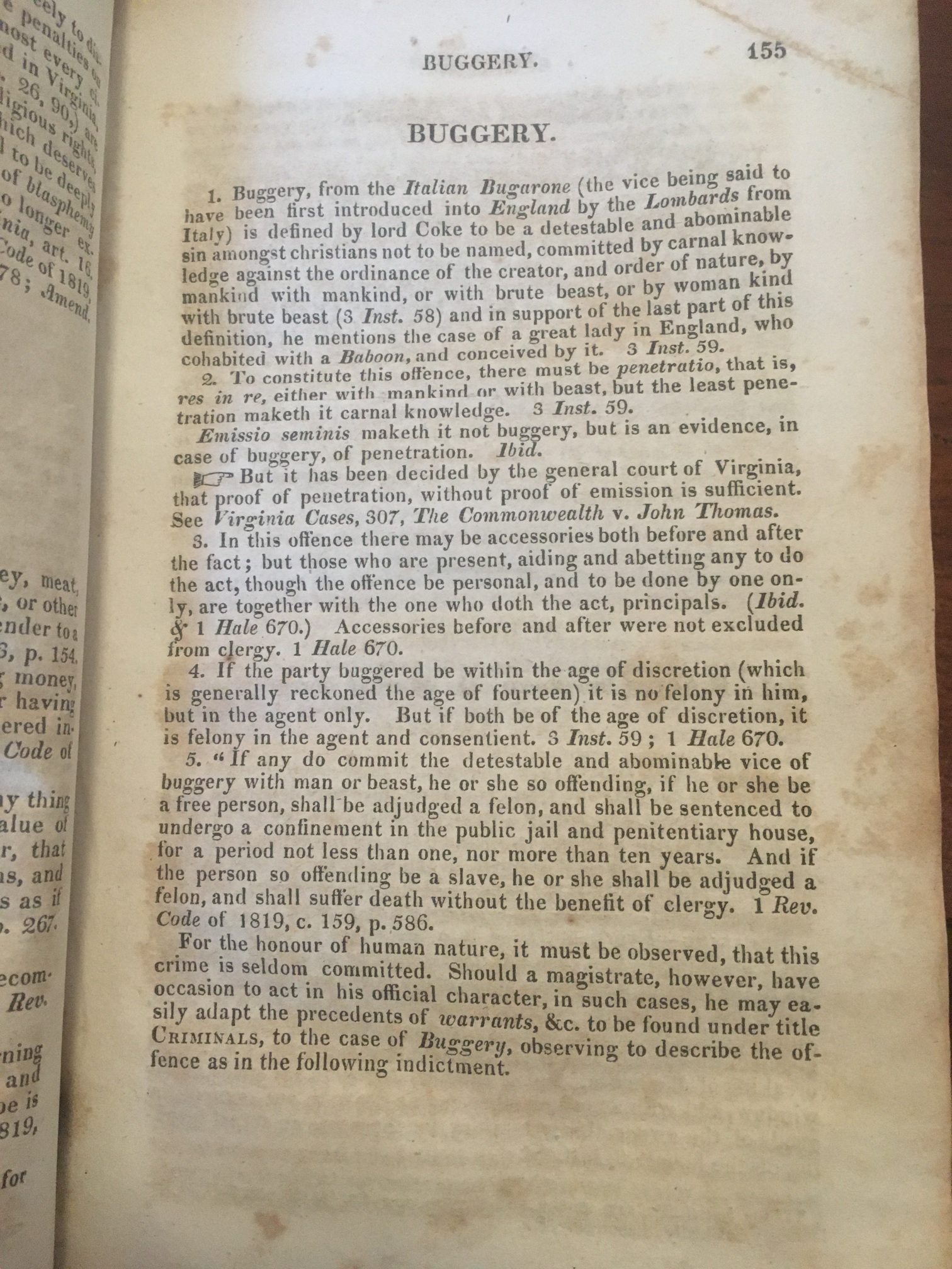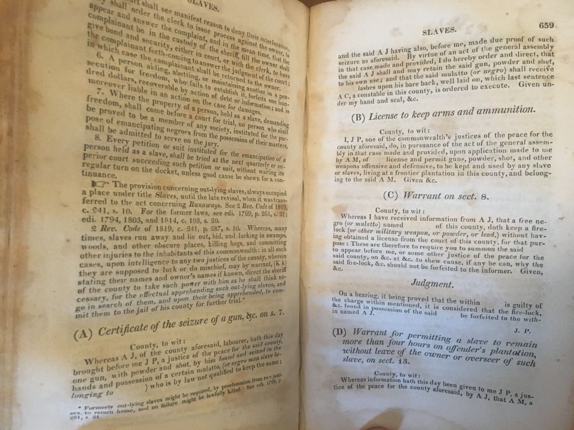 By William Waller Hening. First two pages missing, so unknown exact title and date. Leather bound, with "Henning's Justice" on spine. Signed by owner (twice), "Geo Bright". Also, "Resigned on the 31st day of August in 1830 Geo Bright". Many references to the "Rev. Code of 1819". Purchased at ABQ antique store, 2007-11-21. |