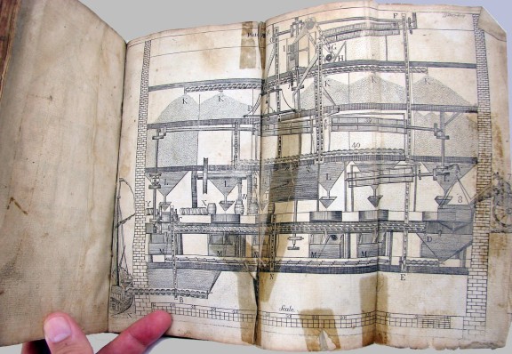 | Description | "The Young Mill-Wright and Miller's Guide In Five Parts--Embellished with Twenty Five Plates". First edition, by Oliver Evans, Philadelphia. Evans invented an automated grist mill, and received U.S. Patent #3 in 1790 for his mill improvements. Leather bound, modern leather title on spine. Some water stains and other minor damage. Twenty-six plates, despite the sub-title. Twelve plates after section IV, all complete except plate VIII, fourteen complete plates after section V. Covers everything from standard physics/mechanics to stone selection and mill-building. Appendix lists list of subscribers (those who put 50% ($1) down to finance the printing). Subscribers include George Washington, Thomas Jefferson and many other Senators and Congressmen. In section V (by Thomas Ellicot, Mill-wright), Plate X shows the "latest improvements", which are described starting on page viii of the preface to that section. GATE Club 2017. See "Technical Americana" #1412. Evans 28644. |
