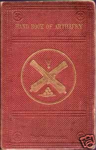 "The Hand-Book of Artillery, for the Service of the United States (Army and Militia)", by Capt. Joseph Roberts. Red cloth and gilt paperback."HAND BOOK OF ARTILLERY" with crossed cannon in gilt on cover. Beautiful marbled end-papers. Edges are also marbled, but not as nicely.