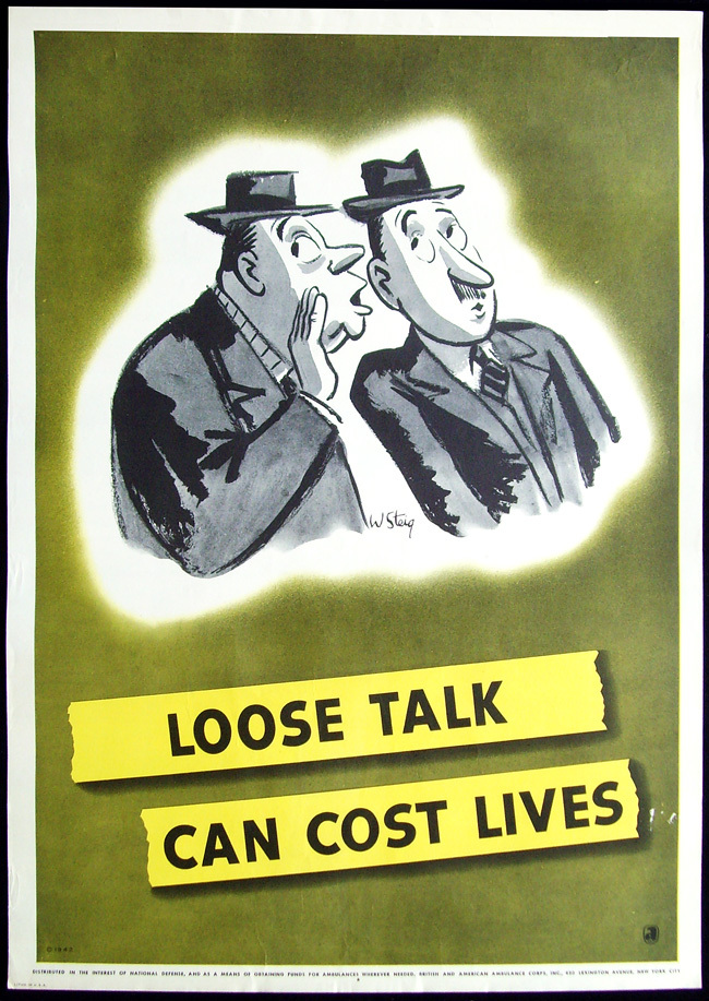 "LOOSE TALK CAN COST LIVES" below men whispering. Signed "W Steig".