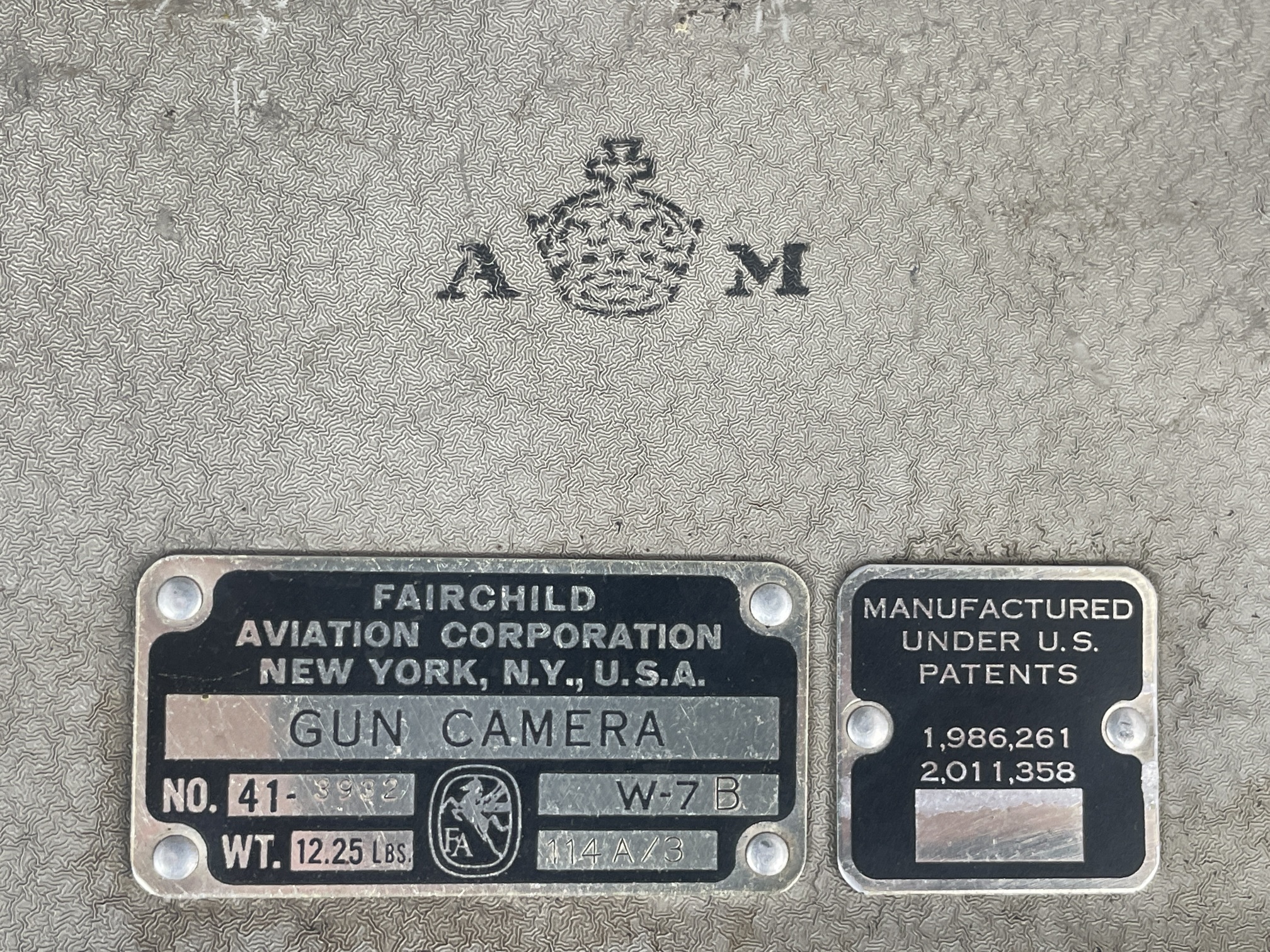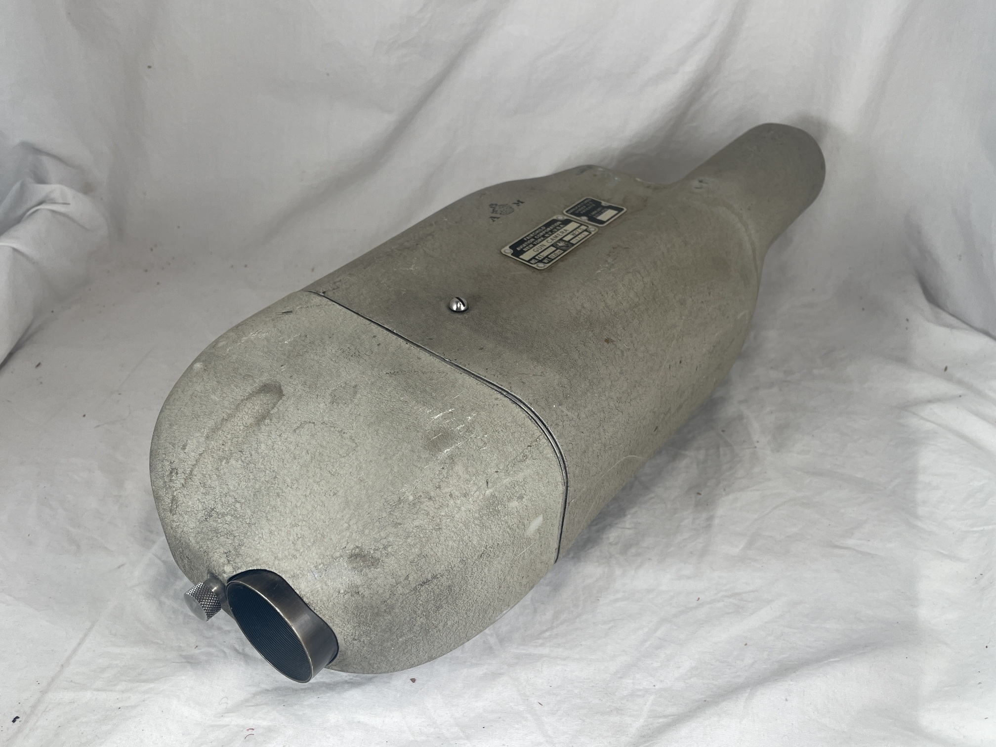 | Description | Gun Camera, W-7B, made by Fairchild Aviation Corp, for the Royal Air Force. See TO 10-10-8 "Handbook of Instructions with Parts Catalog for the Type H-3 Aircraft Gun Camera". Came with Movie camera for gun cameras (from W-7B) inside. |