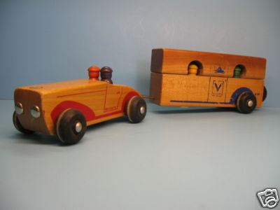 | Description | Unusual squared-off version of trailer marked "634". Car with metal headlights and axles, unnumbered, with intact yellow "MADE IN U.S.A." decal (dt4c) on front. Purchased from the John Brunkowski collection of toy RVs. Featured in his book, "RV & Camper Toys: The History of RVing in Miniature". |