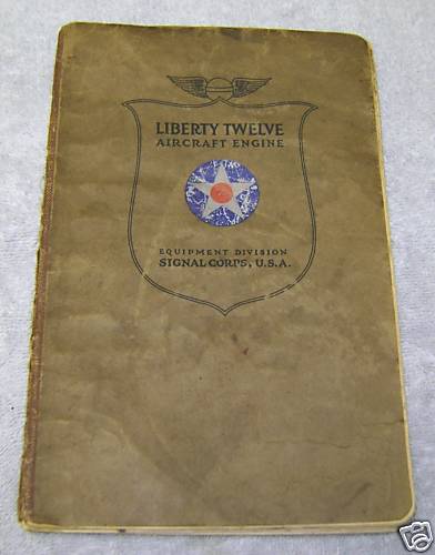 123 pages, plus engine test logs. Cover: "LIBERTY TWELVE | AIRCRAFT ENGINE | EQUIPMENT DIVISION | SIGNAL CORPS, U.S.A." |