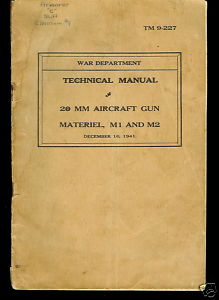 TM 9-227 "20 MM Aircraft Gun Materiel, M1 and M2"
