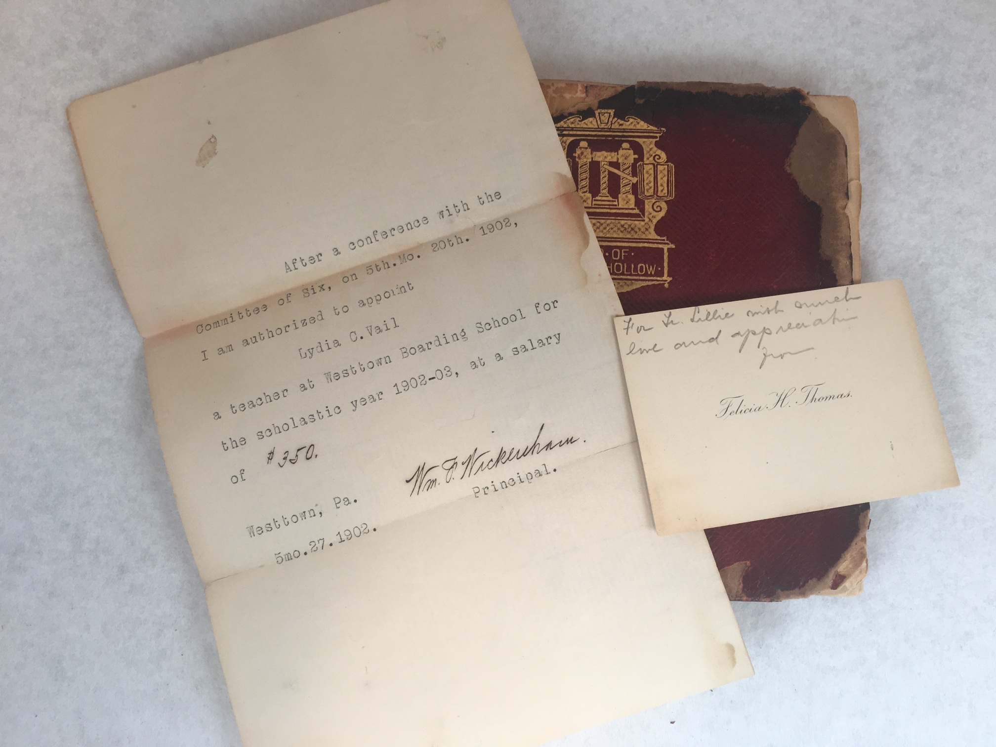 Includes the calling card of "Felicia H. Thomas" with note: "For ? Lillie with much love and appreciation from". Also includes a typed letter:
