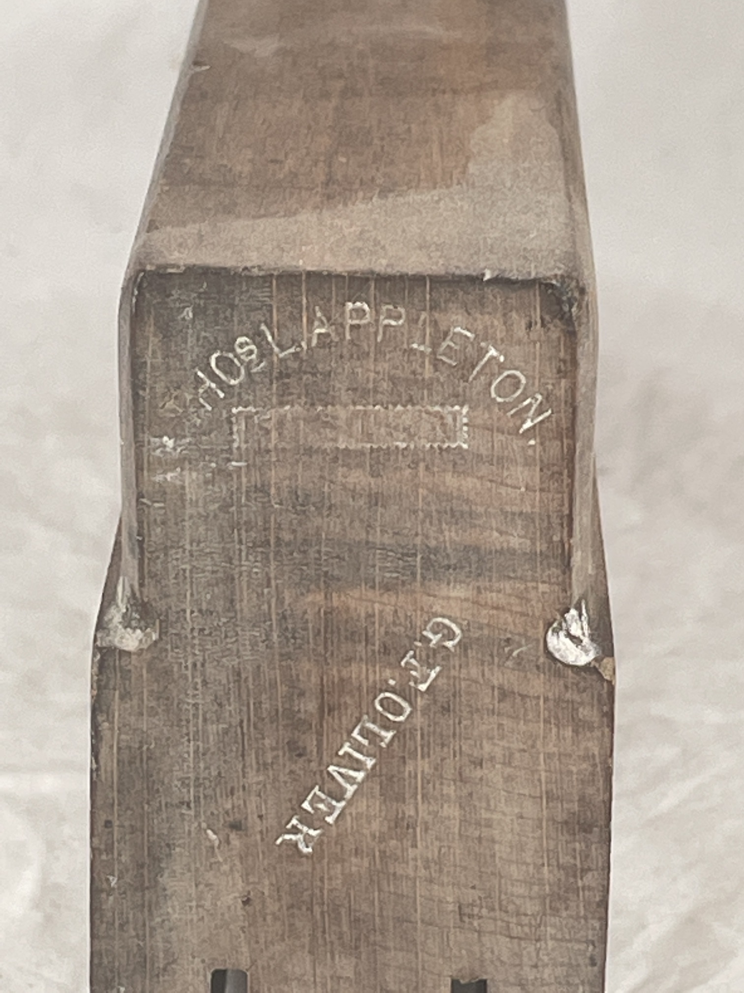 "THOS. L. APPLETON" in an arch over "BOSTON" in a serrated rectangle. Also stamped "G.F.OLIVER" on both ends.
