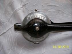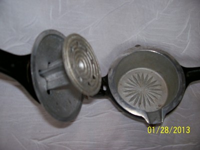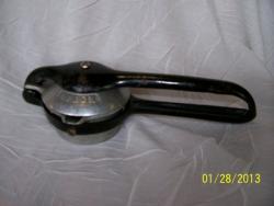 As described in 1934 catalog: "The movable lid drops by its own weight and completely covers the lemon before the pressure is applied, therefore no juice can squirt on the operator, The closed lid acts as a strainer whn the drink is poured. Only clear juice is delivered into the glass.