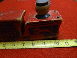 The red train appears only in the 1940 catalog, but the engineer is a simple cylinder in that year. This engineer appears to be later, so considering this to be 1940-1941. |