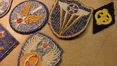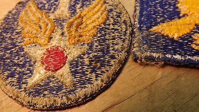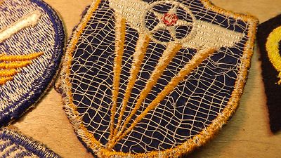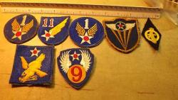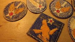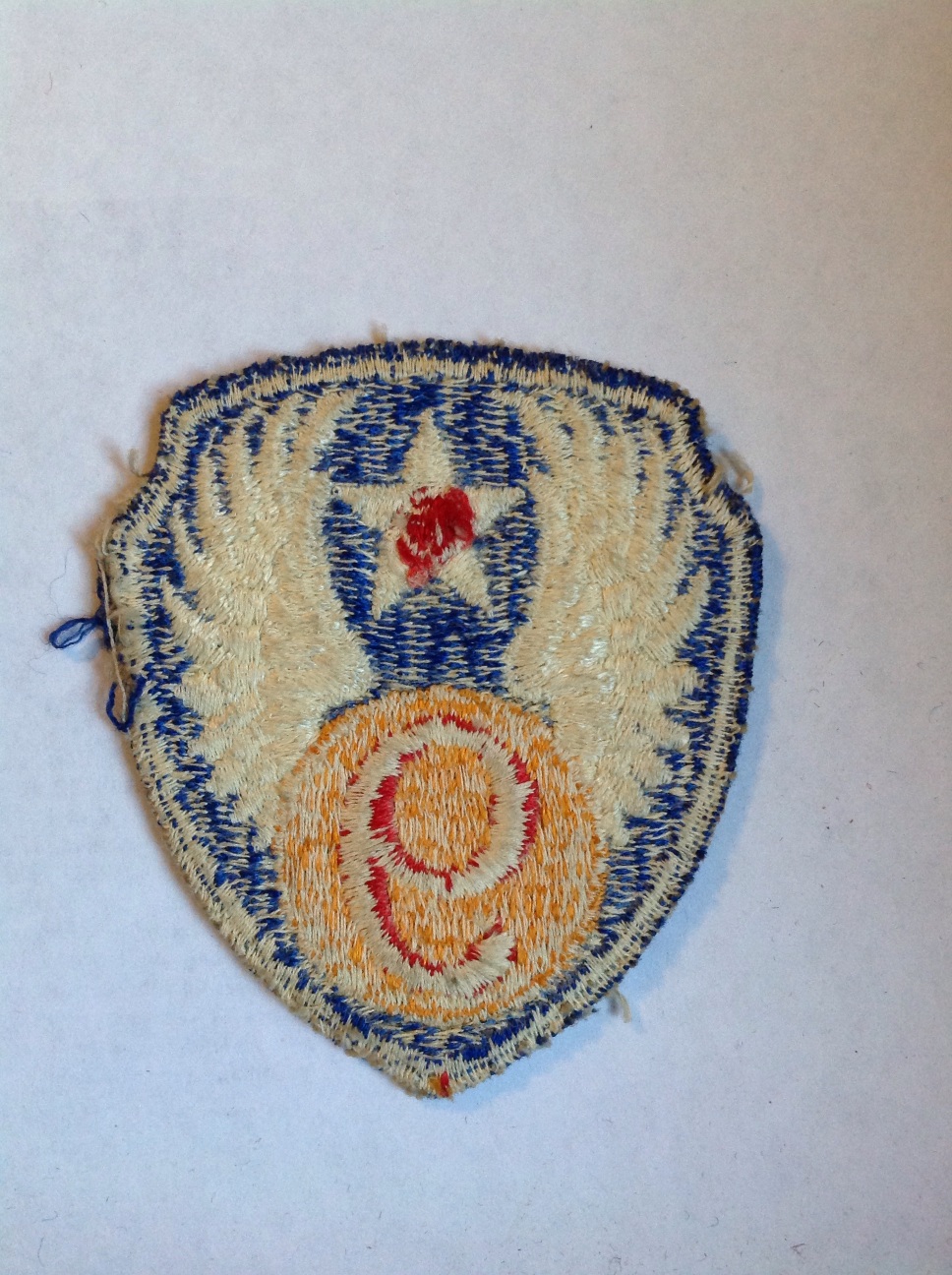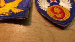 Shoulder sleeve insignia for the Ninth Air Force. A red "9" on a gold circle with white wings, under a white star with red center on a blue shield-shaped patch.