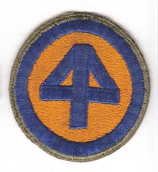Back-to-back blue "4"s on a gold disc on a blue disc with a green border. Fully embroidered, green back.