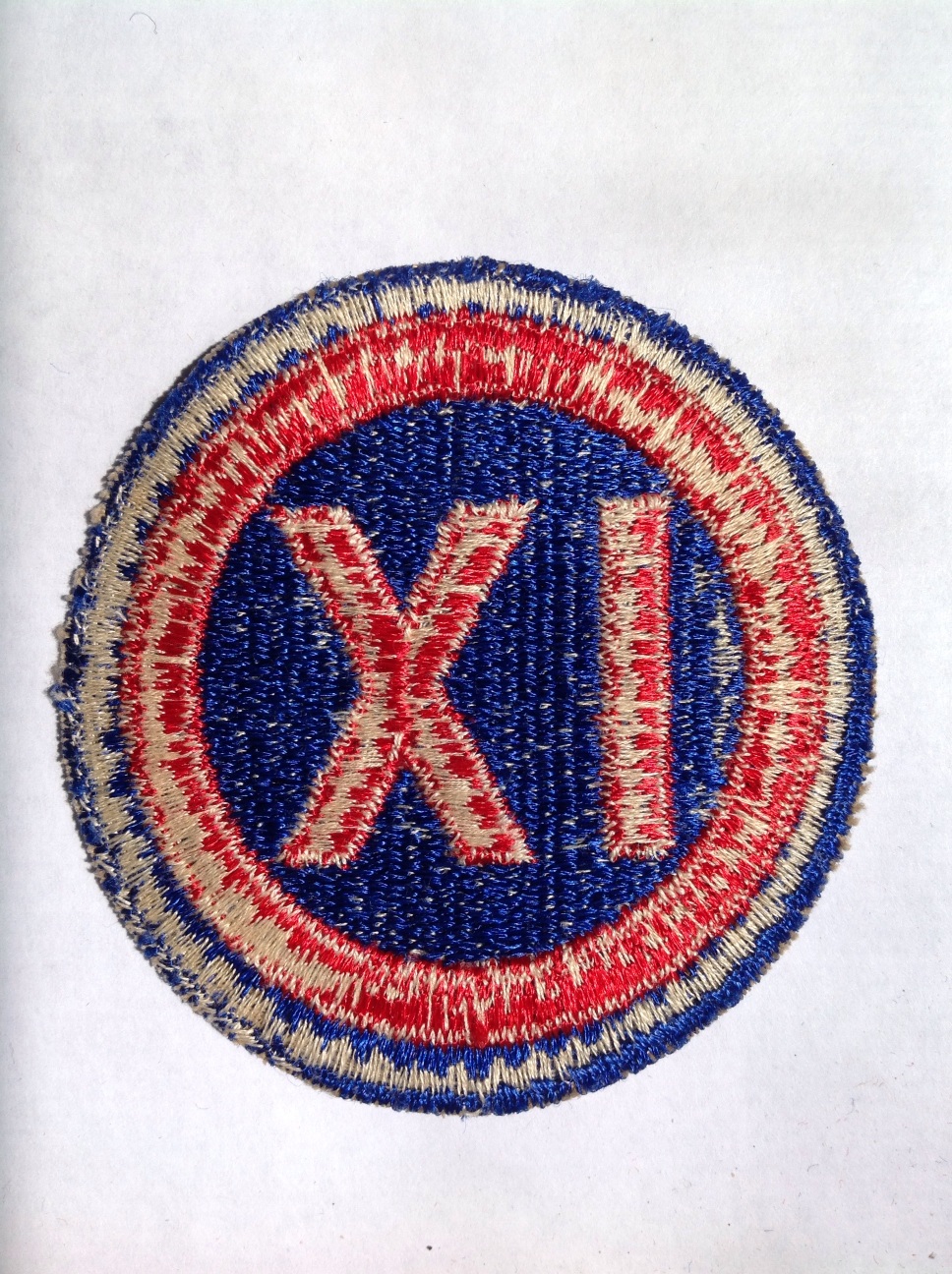 On a blue disc 2 13/16 inches (7.14 cm) in diameter the scarlet Roman numeral IX encircled by a scarlet annulet.
