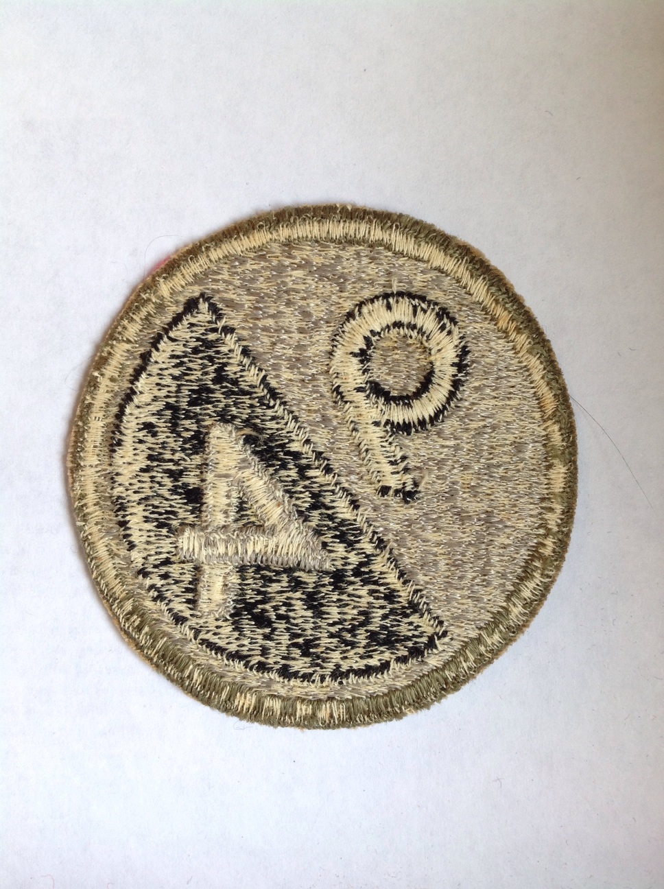 On a disc divided bend sinister silver gray and black fimbriated silver gray, all edged with a 1/8 inch (.32cm) black border, a black Arabic numeral "9" on the silver gray and a silver gray Arabic numeral "4" on the black. The diameter is 2 1/2 inches (6.35cm).
