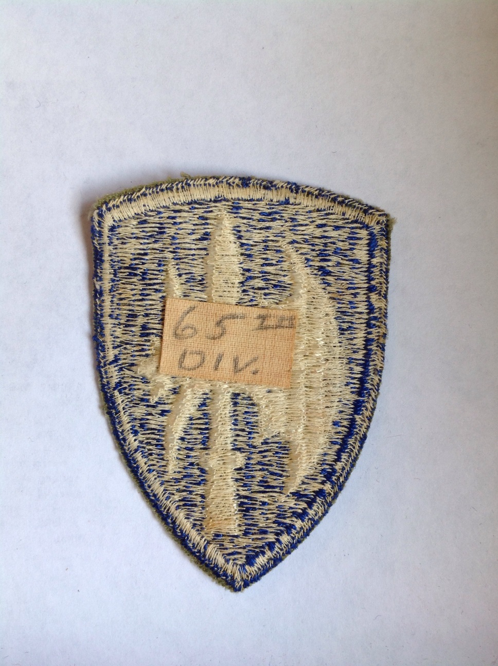 Cut-edge, about 50% white-back. Cloth tag with "65th | DIV." written on it on back.