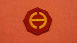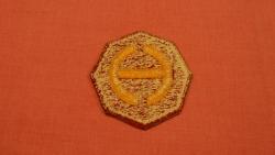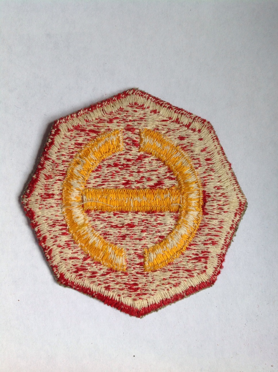 On a scarlet octagon, points at the horizontal and vertical axis, and edged with a 1/8 inch (.32cm) scarlet border 2 1/2 inches (6.35cm) in height overall, a yellow san serif letter "H" centered, the vertical sides of which are circular, the diameter being 1 3/4 inches (4.45cm).