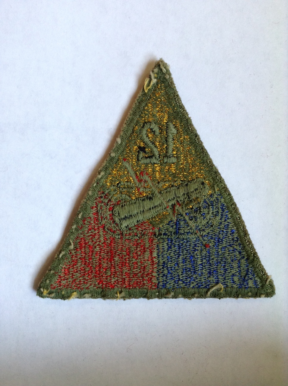 Well-used 12th Armored Division patch, with 50% green back and OD and khaki thread remnants.