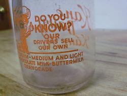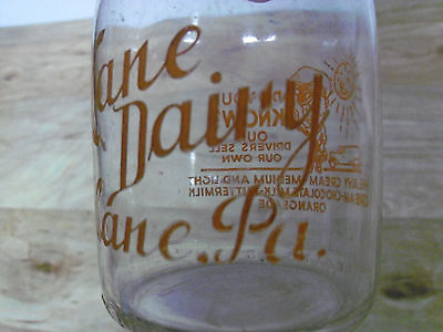 "Kane | Dairy | Kane, Pa." in ink on the front, with illustration on the back, with "DO YOU | KNOW? | OUR | DRIVERS SELL | OUR OWN | HEAVY CREAM - MEDIUM AND LIGHT | CREAM - CHOCOLATE MILK - BUTTERMILK | ORANGEADE".