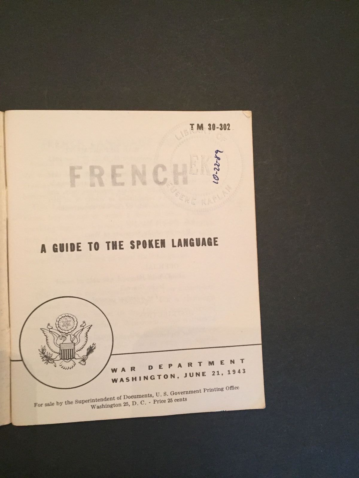 Blue cover, Introductory Series. "WASHINGTON, JUNE 21, 1943". Library seal of Eugene Kaplan, dated 1989 in ink.