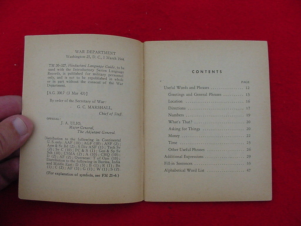 HC&M: TM 30-327 "Hindustani Language Guide"