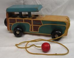 | Description | Late model station wagon, with "h" over "holgate toys" rectangular decal (dt5) in front of the driver's seat. No people, but string complete with ball. | |