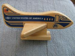 | Description | Simple Air Force One on a stand, not personalized for any one President (some were), with only "UNITED STATES OF AMERICA" on the side. Held together with two philips head screws on bottom. Branded, "HOLGATE | MADE IN USA | KANE, PA" on bottom of base (hlt7a). | |