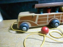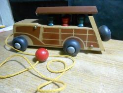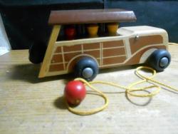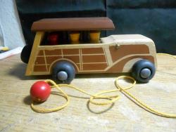 | Description | Mint condition slant-back style station wagon with red pull ball on yellow string. Brown roof. Two blue, two yellow and two red helmeted (WWII style) people. Decal type 4c (dt4c) on the front. The slant-back model appears to be made in 1946-1947 only. Reinforced manila colored box with red printing has some crush damage to top, tearing about 2 inches of seams. |