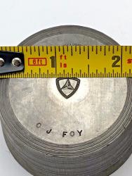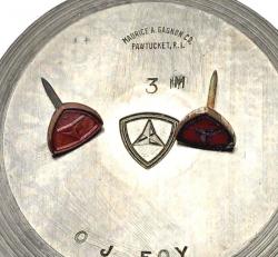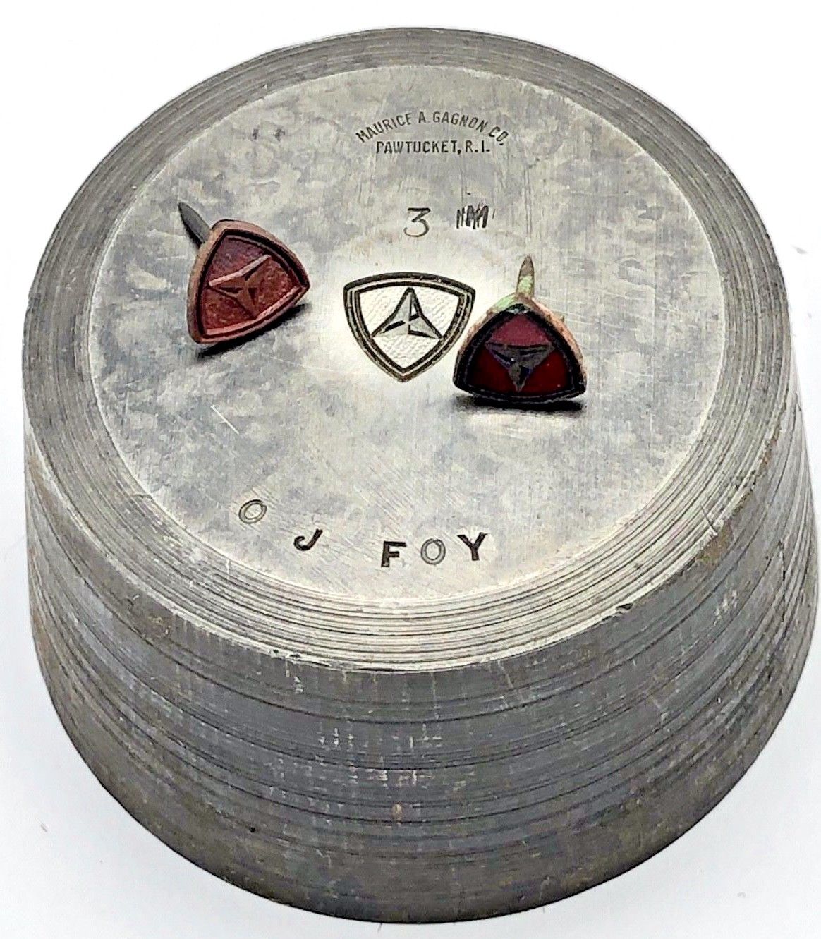 Steel die to make a 3rd Marine Division stick-pin. Stamped "3 M" (1st Marine), "MAURICE A. GAGNON CO. | PAWTUCKET,R.I." (die maker?), and "O J FOY" (crudely stamped by hand, unknown meaning).