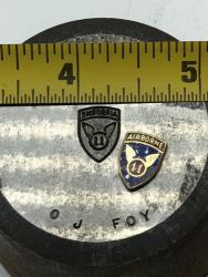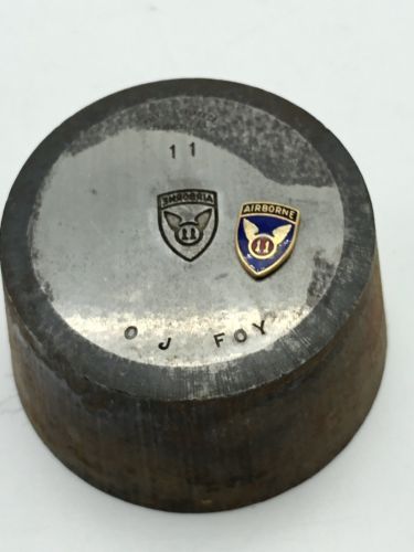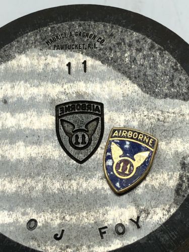 Steel die to make a 11th Airborne Division stick-pin. Stamped "11", "MAURICE A. GAGNON CO. | PAWTUCKET,R.I." (die maker?), and "O J FOY" (crudely stamped by hand, unknown meaning).