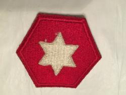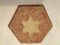 Cut-edge patch. Six pointed white star on a red hexagon. 95% white back. Slighly rough back, rolls in one direction, stiff in the other.