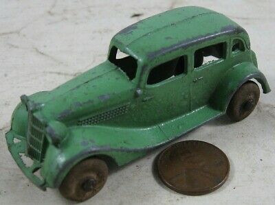 | Description | Marked "TOOTSIETOY | MADE IN | UNITED STATES | OF | AMERICA". Die cast body with green paint. Steel axles, with hardened white rubber tires. I believe this is an appropriate replacement for Holgate #257 "Auto Ferry", type 1. |