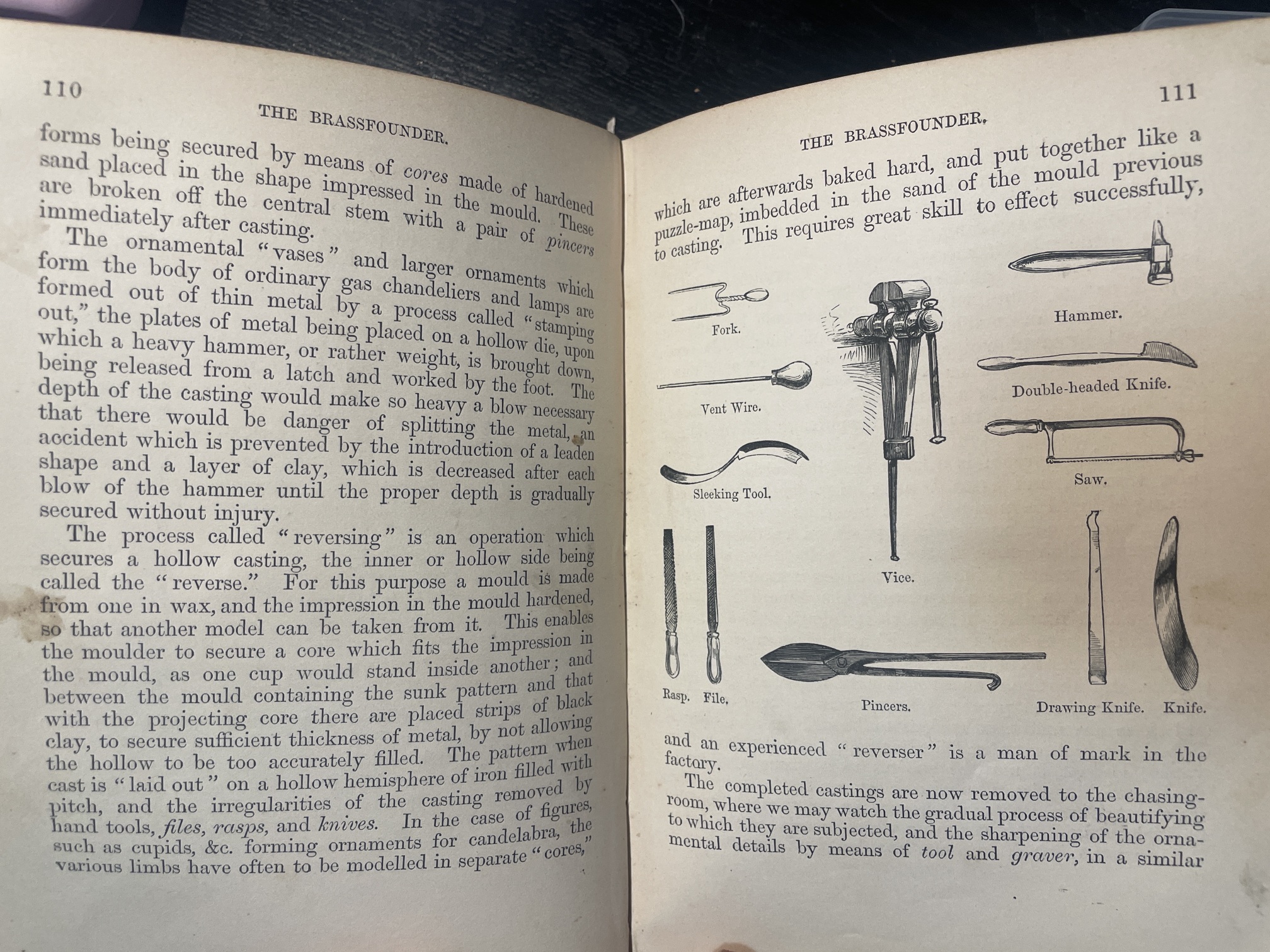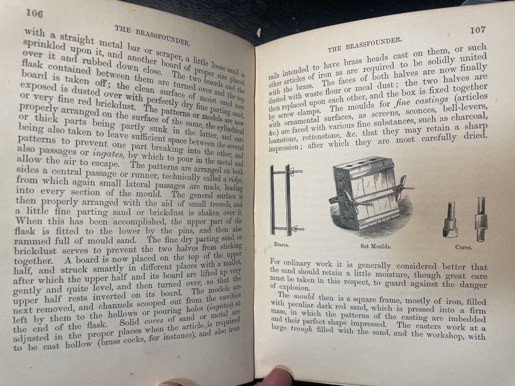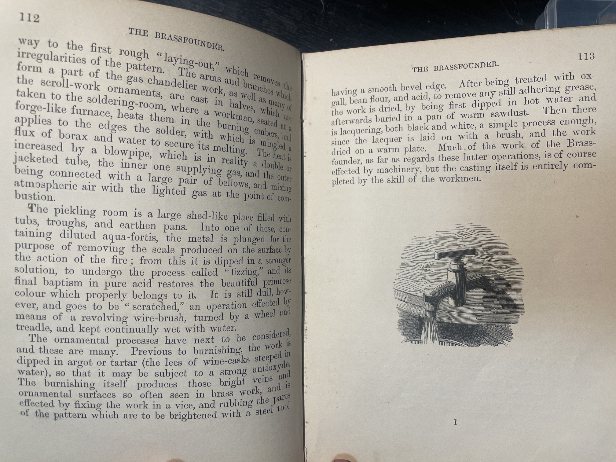 Half-calf, with marbled board, end-papers, and edges. Some damage to spine and boards. Front board and endpaper detached. "BOY'S | BOOK OF | TRADES" on red label to spine.