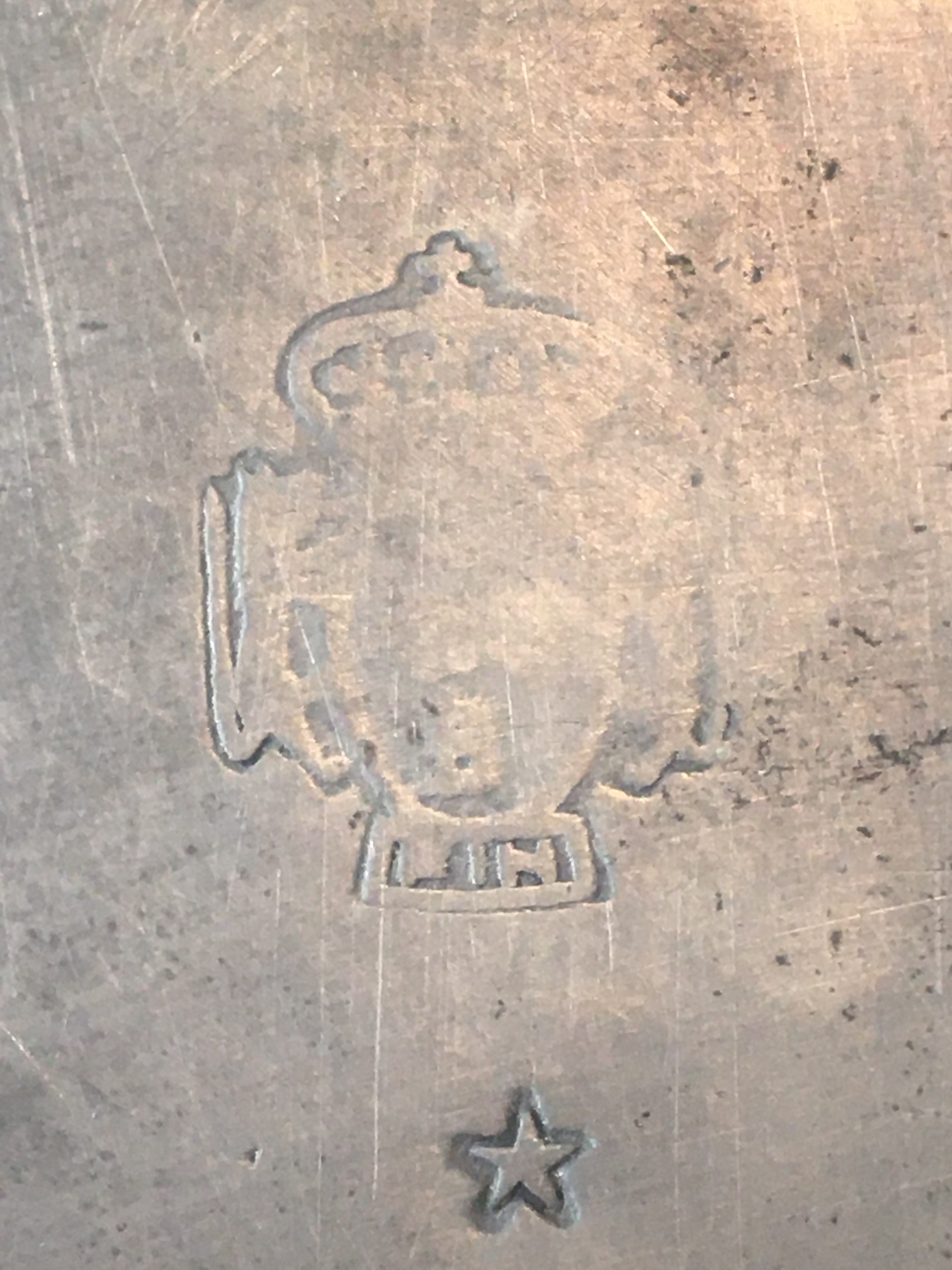 Marked on bottom with a star and a crowned crest with two animals, and what appears to be a "B" and a small "FN".