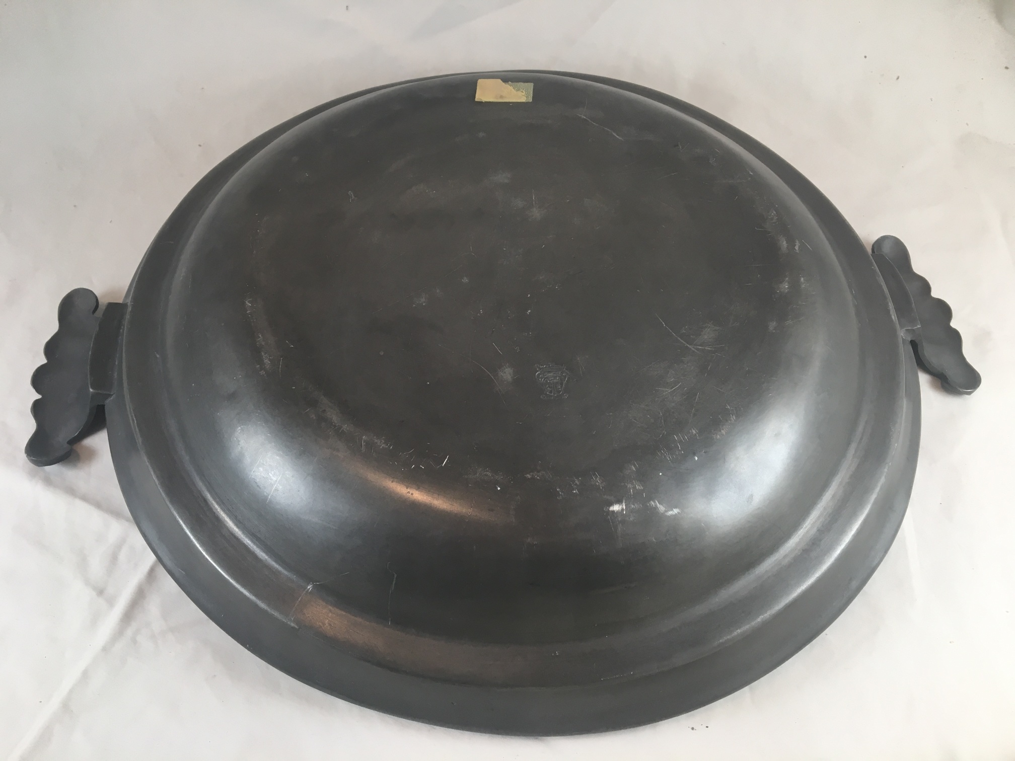 Marked on bottom with a crown over a hammer flanked by "C" and "B". Rococo handles.
