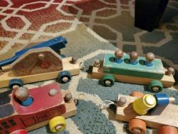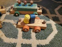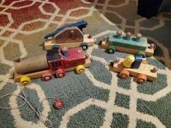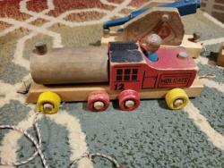 | Description | A nearly complete war-time version of Holgate #1212 Activity Train. This version, instead of having pegs and rings, has am artillery piece, a double spotlight, and a troop carrier with three soldiers and an additional block. A fourth early painted soldier serves as engineer. Nearly complete, with pull string and ball. Missing only one of the spotlights. Locomotive is marked "12", as in Holgate #1212 Activity Train (wartime). "JR", Jarvis Rockwell's initials, are on the artillery piece. *** Need to find this in the literature *** |