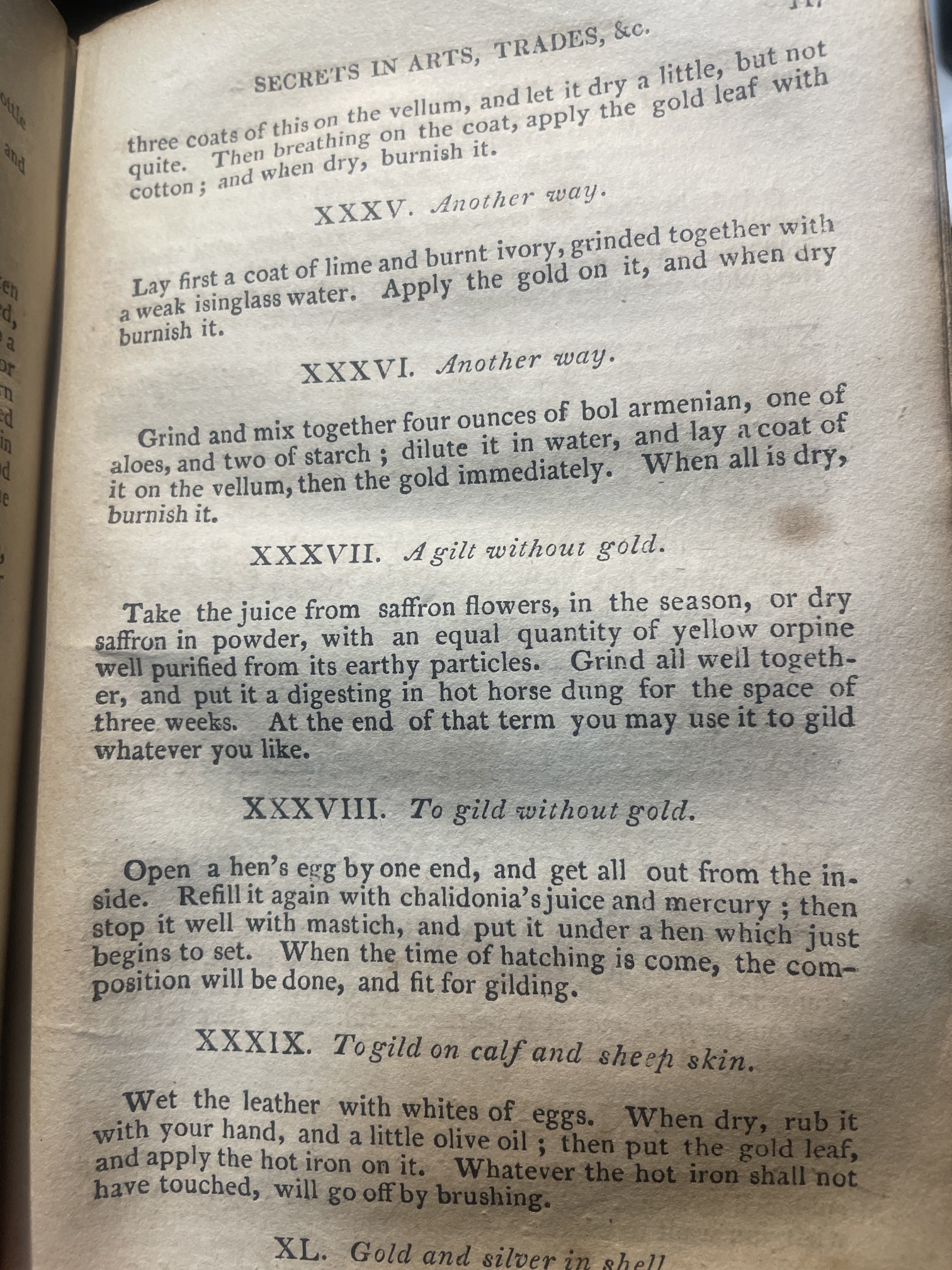 "Valuable | SECRETS | in Arts, Trades, &c. | Selected from the best authors. | and | Adapted | to the situation of the | United States. | Hæ tibi erunt Artes! Virg. | New-York: | Published by Evert Duyckinck, | No. 110 Pearl-Street | 1809.".