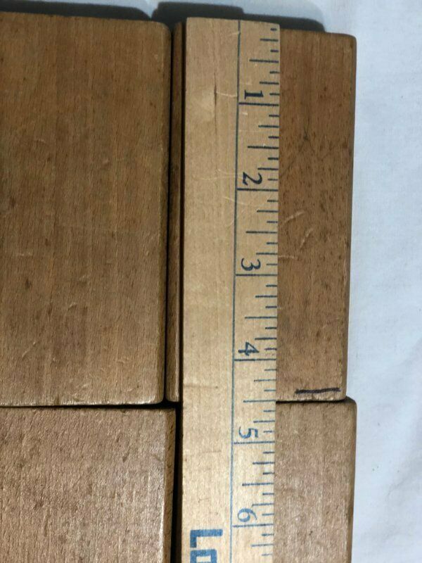 | Description | First version of the Playroom Blocks in a cloth bag. The bag is silk-screened logo similar to the Type 4b decal, along with "PLAYROOM | BLOCKS" in a period typeface. This bag is seen in "For the Pre-School Child", Holgate Toys brochure. The set should contain the following, and is complete but for one Pillar. There is an extra round rod, longer and thinner than the columns. 6 Oblongs 4 Diagonals 6 Squares 2 Trapezoids 4 Pillars 2 Byzantine Arches 4 Columns 2 Buttresses |