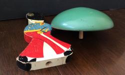 | Description | See 1940 catalog. Pre-USA decal (dt4b) to side of head. Rocky is loose, and comes right off the base. There are cracks to paint finish and decal, possibly from water damage. See Holgate #1112 "Captain Rocky" for better example. |