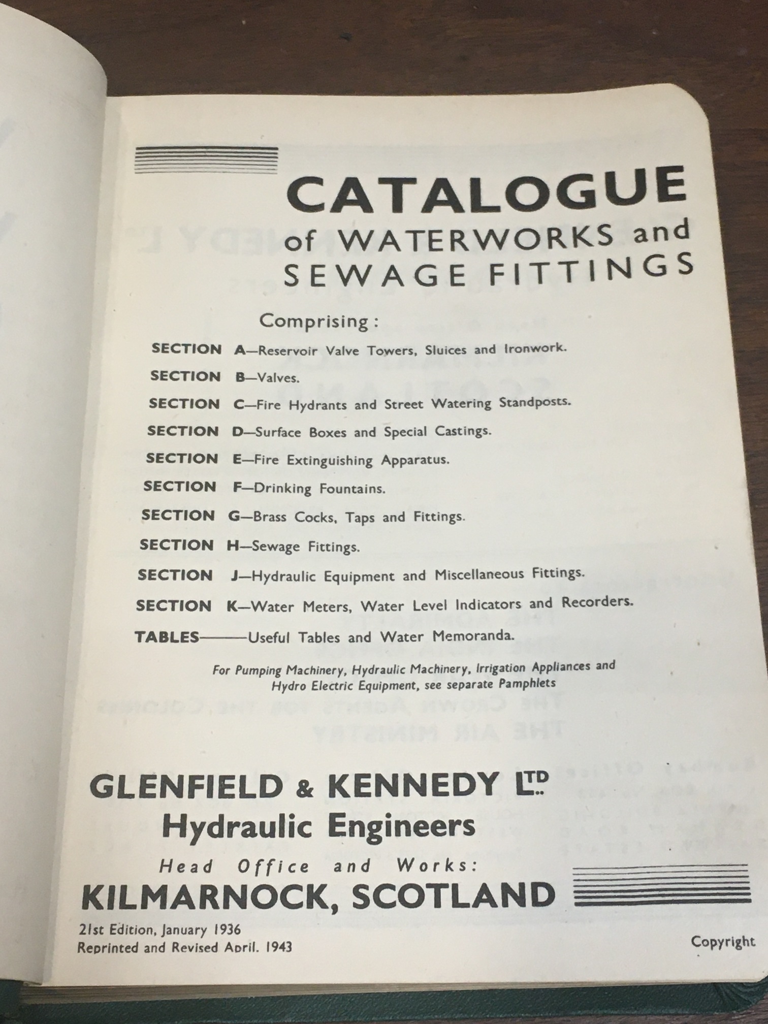 "Water Works Fittings", Glenfield and Kennedy Limited, Kilmarnock |