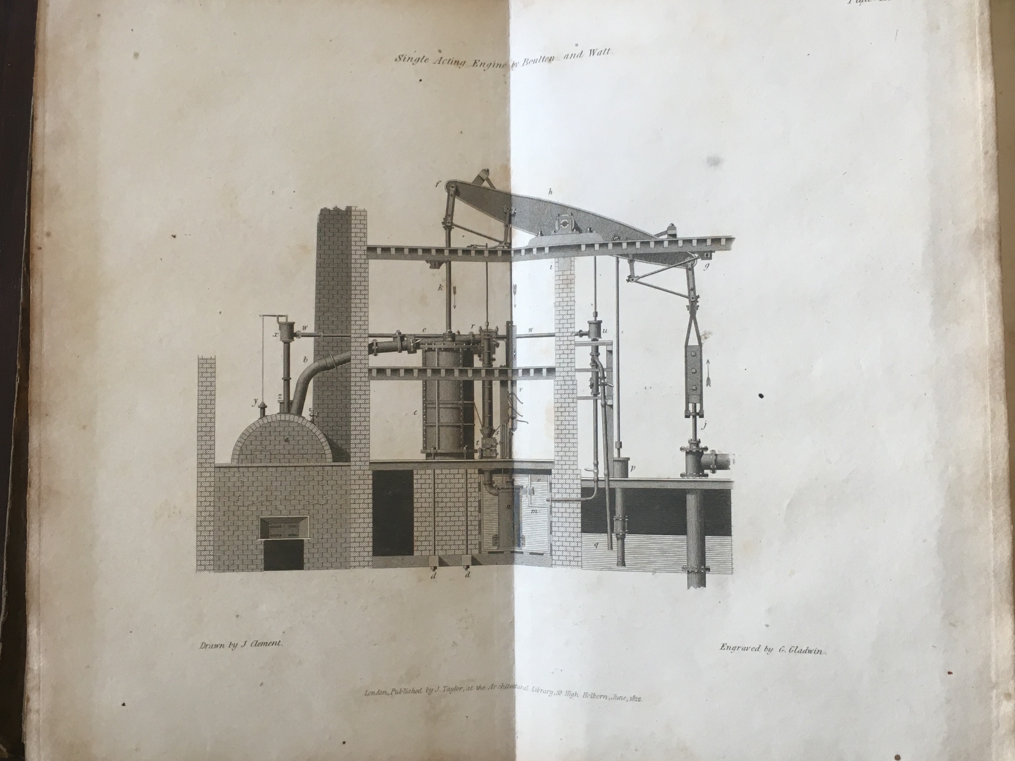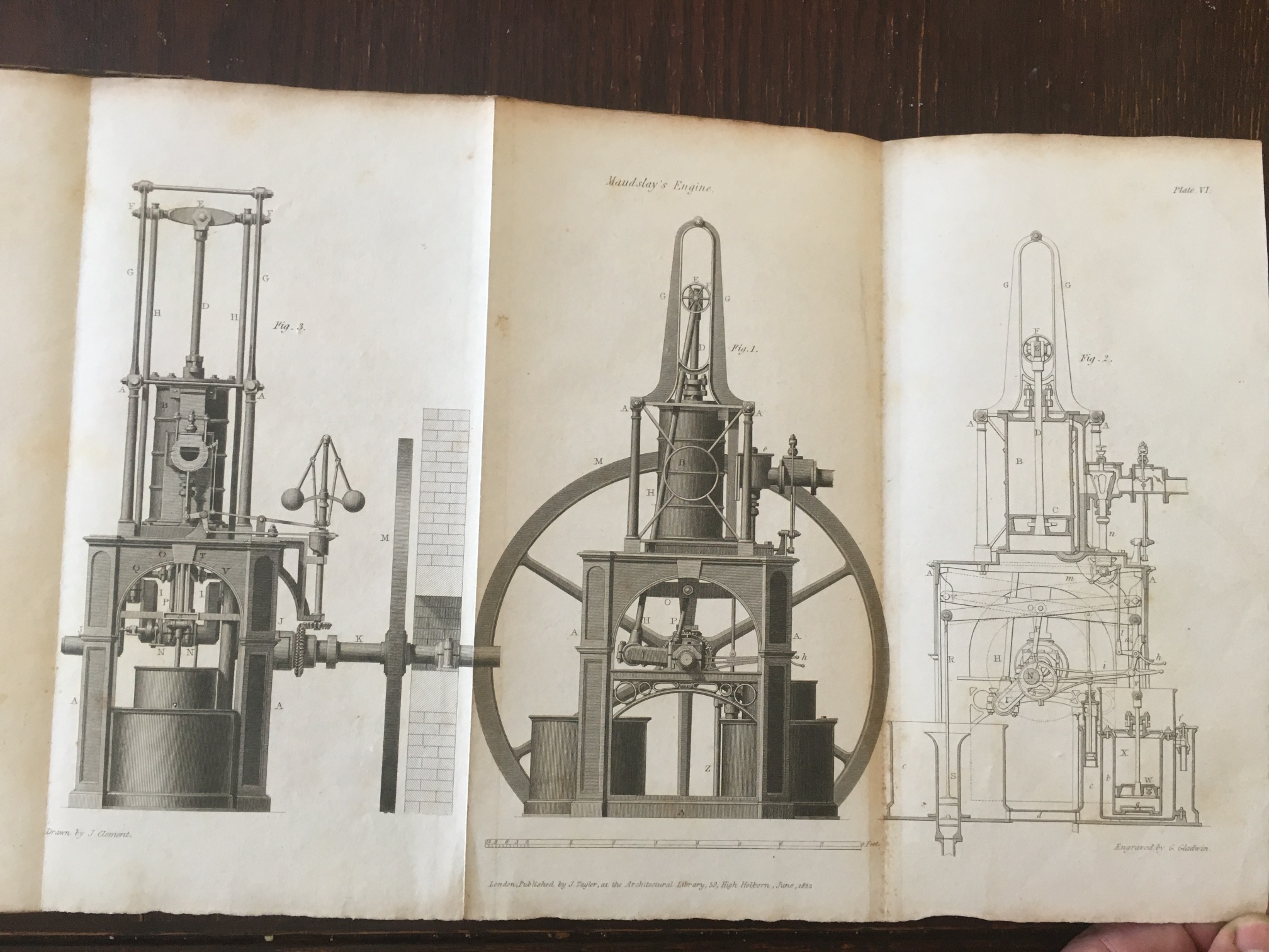 “An | Historical | and | Descriptive Account | of the | STEAM ENGINE, | Comprising a General View of the Various Modes | of Employing Elastic Vapour as a Prime | MOver in Mechanics; | with | An Appendix | of patents and parliamentary papers connected | with the subject | By Charles Frederick Partington, | of the London Institution. | "Soon shall thy arm, unconquer'd Steam! afar! | Drag the slow barge, or drive the rapid car; | Or on wide-waving wings expanded bear | The flying chariot through the fields of air." Darwin. | Illustrated by Thirteen Engravings and Diagrams. | London: | Printed for J. Taylor, | At the Architectural Library, 59, High Holborn. | 1822.”
