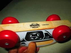 | Description | Simple black and white police car with "Call | 911" and "Police", with Logo Type 8b (hlt8b) and the number "12069504" on the bottom. Appears to be made of laminated (2 pieces) maple. Axles are two large rivets (so hubs appear larger on the left side, than on the expanded right side), and fit loosely in the holes through the body. | |
