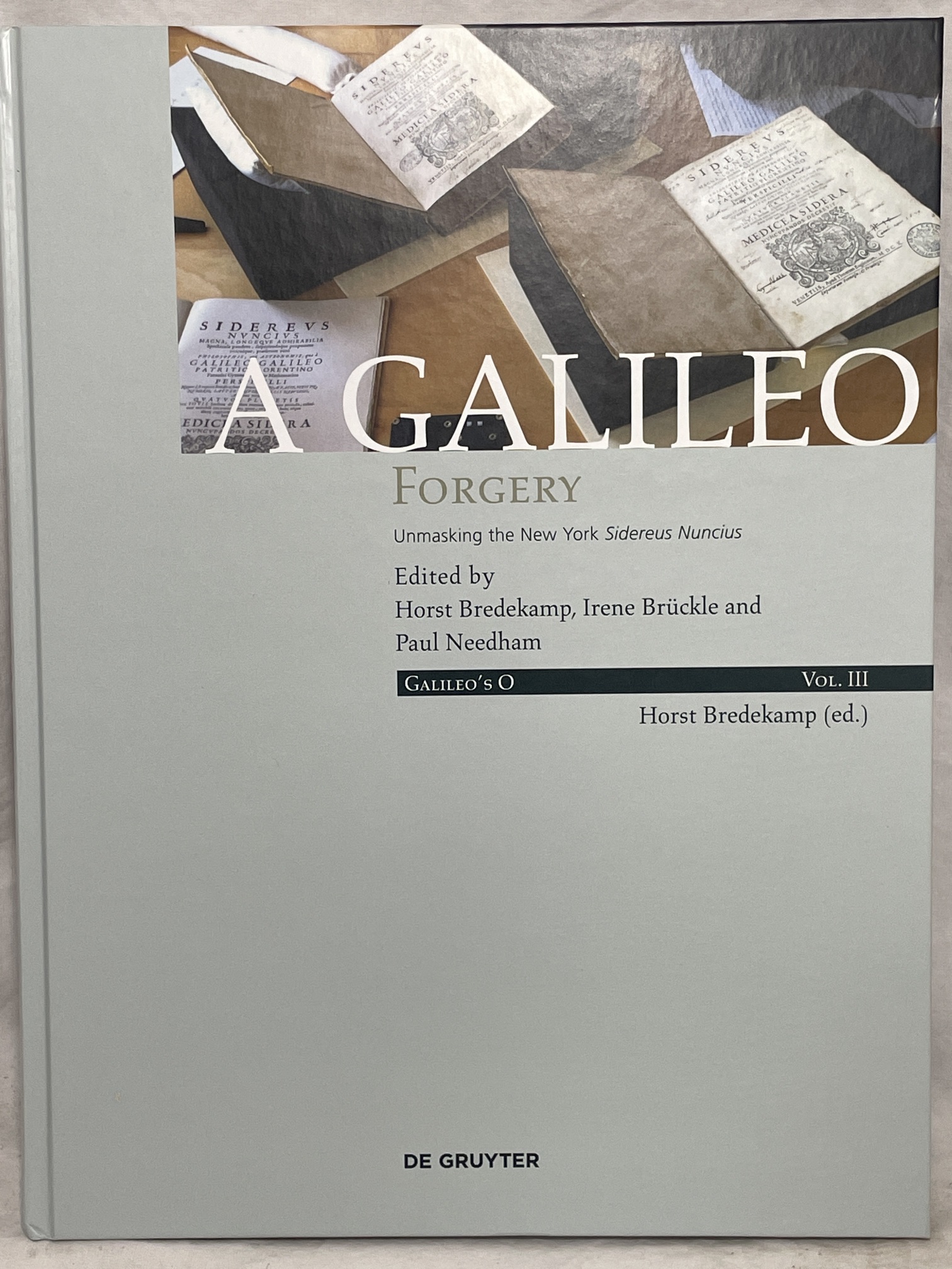 This describes the fascinating uncovering of a completely fabricated book, purported to be the personal copy of Galileo Galilei, with his own illustrations of the moon. This book was validated by the previous two volumes. This volume is a revisiting of the evidence, after it was identified by historian Nick Wilding as a forgery. I saw him speak at the Huntington on this topic in January of 2014. |