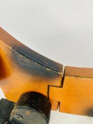 The feet, which appear to have slightly larger legs than usual, are attached by nails, peened over a small washer, which is also atypical, though may indicate more sophistication than would be expected from a home shop.
