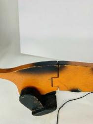 The black paint is a mixture of spray paint (spots) and hand-painting (nose and mouth). The tail has a missing chip, and appears to have been touched-up post-break.