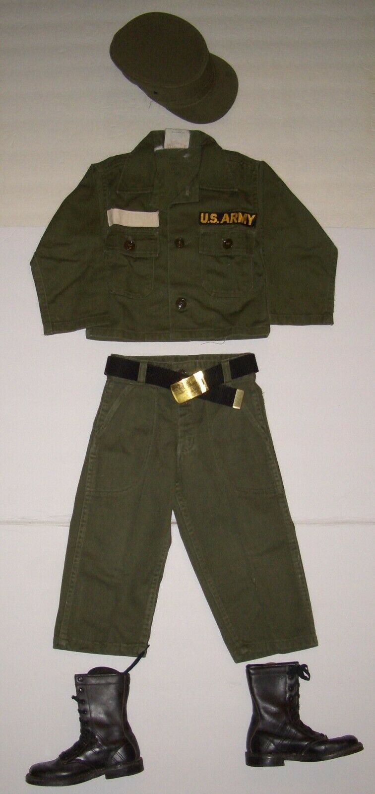 The black webbing belt and brass buckle appear to be GI.