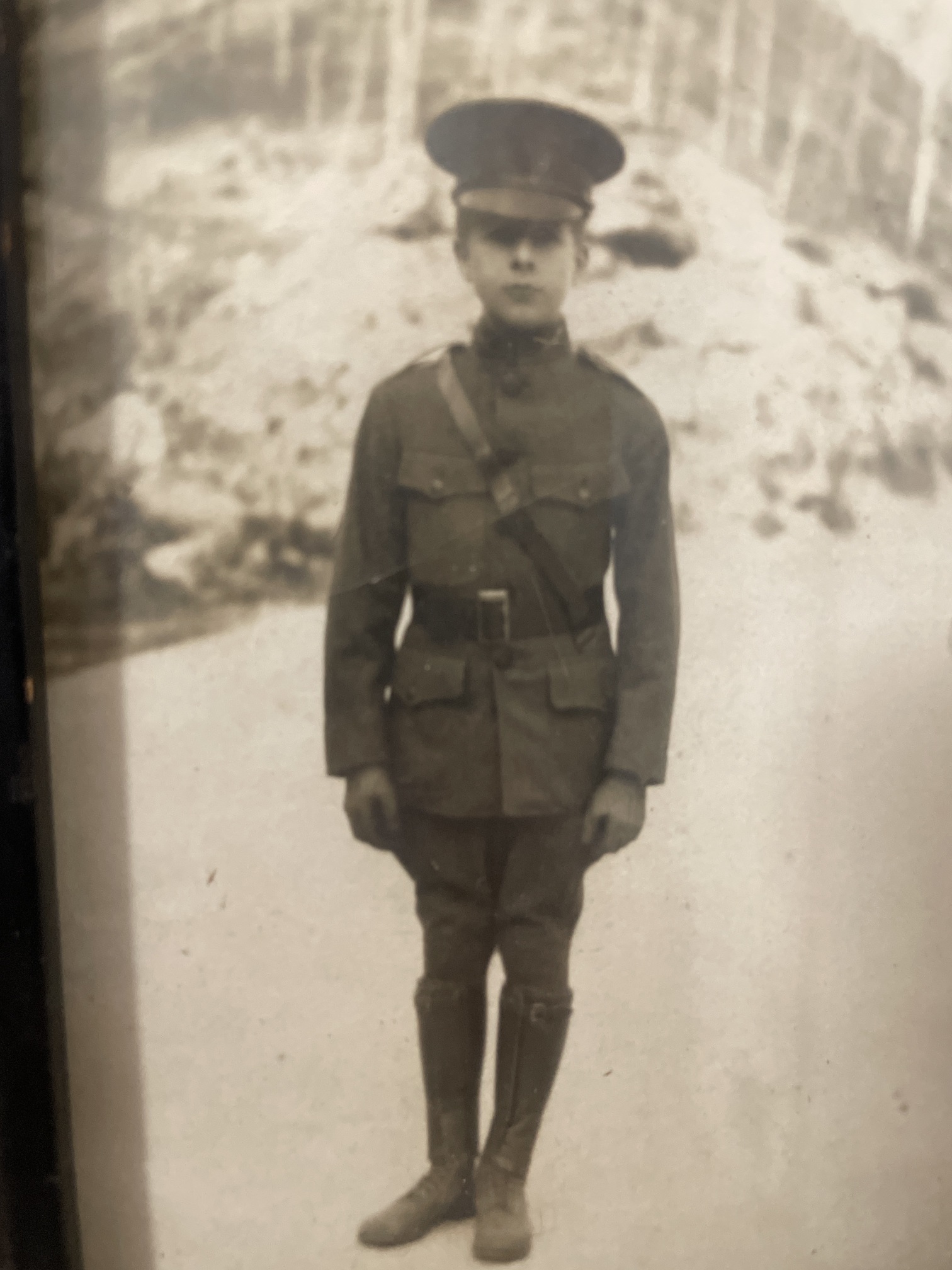 | Description | Photograph of Thomas Nichol, Jr., wearing a WWI-era child's US Army officer's uniform, consisting of a peaked cap, wool tunic and breeches, leather gaiters, and Sam Browne belt. In wooden frame, sealed with paper. In (later?) marker on back, "THOMAS | NICHOL JR. | AGE 11 | 1926". Entire grouping: British-made "Ike" jacket of Thomas Nicol, Jr. Photograph of Thomas Nichol, Jr., in Army uniform Boy's Army cap of Thomas Nichol, Jr. Boy's Army uniform of Thomas Nichol, Jr. Boy's Sam Browne belt of Thomas Nichol, Jr. Boy's shoes, associated with Thomas Nichol, Jr. grouping Boy's leather gaiters of Thomas Nichol, Jr. |