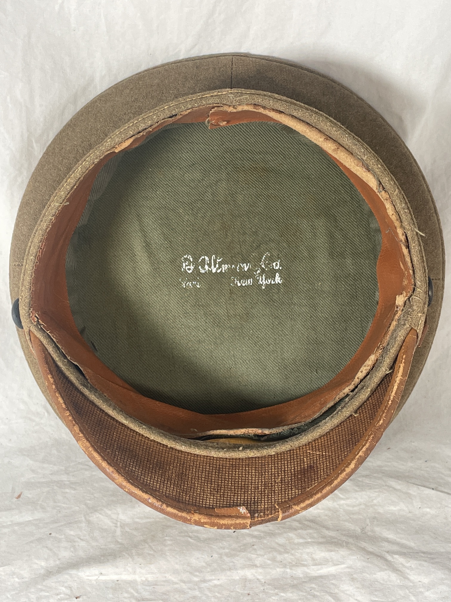 | Description | A US Army peaked cap (M1910?), from Thomas Nichol, Jr. grouping. Wool body with brown leather and officer's cap insignia. Entire grouping: British-made "Ike" jacket of Thomas Nicol, Jr. Photograph of Thomas Nichol, Jr., in Army uniform Boy's Army cap of Thomas Nichol, Jr. Boy's Army uniform of Thomas Nichol, Jr. Boy's Sam Browne belt of Thomas Nichol, Jr. Boy's shoes, associated with Thomas Nichol, Jr. grouping Boy's leather gaiters of Thomas Nichol, Jr. |