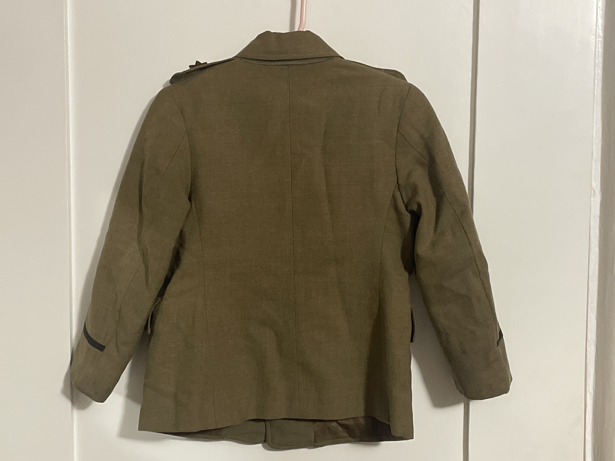 There is a single child's USN-style button in the lower left pocket, possibly an original button from the coat, before they were replaced with Army buttons.