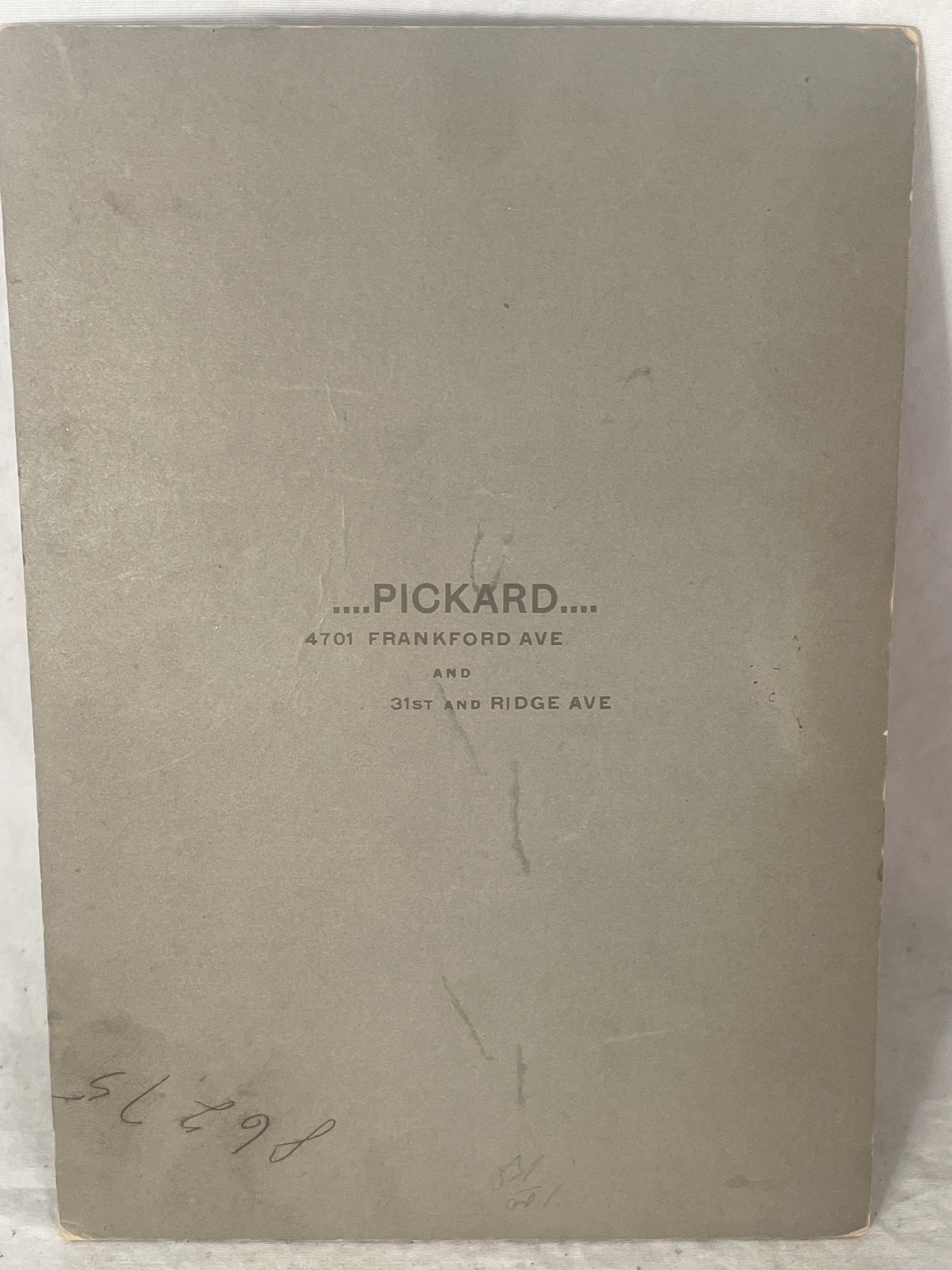 Photo is mounted landscape on a portrait card. The card is marked, on the front: "PICKARD | 4701 FRANKFORD AVE | PHILA.", and on the back: "....PICKARD.... | 4701 FRANKFORD AVE | AND | 31st and RIDGE AVE". On back, in pencil, "862.75", and an old "1.00" price.