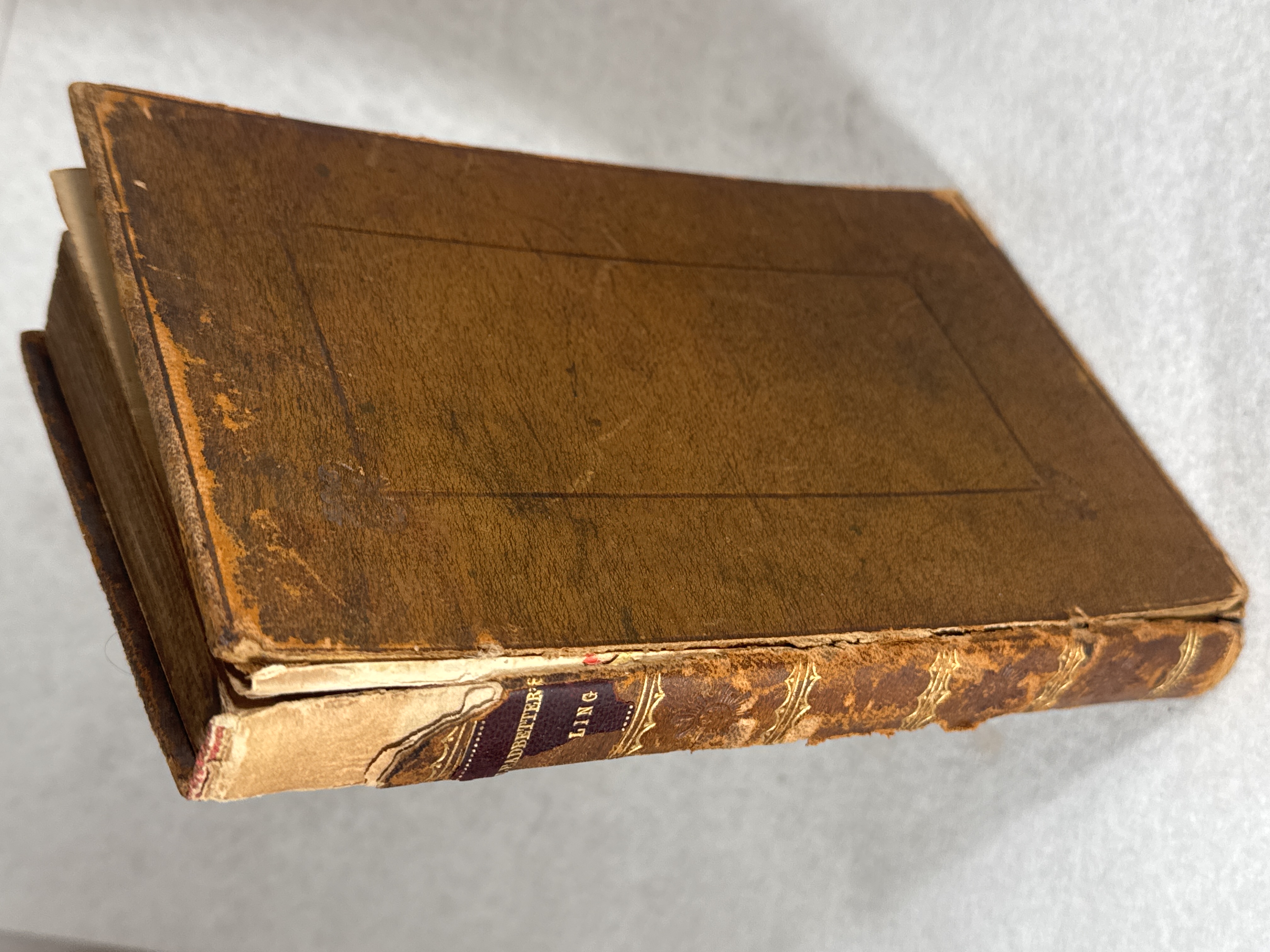 Tooled calf, with partial label to spine. Top of spine missing. Front board worn and partially detached. End papers replaced (?). 148 pages. |
